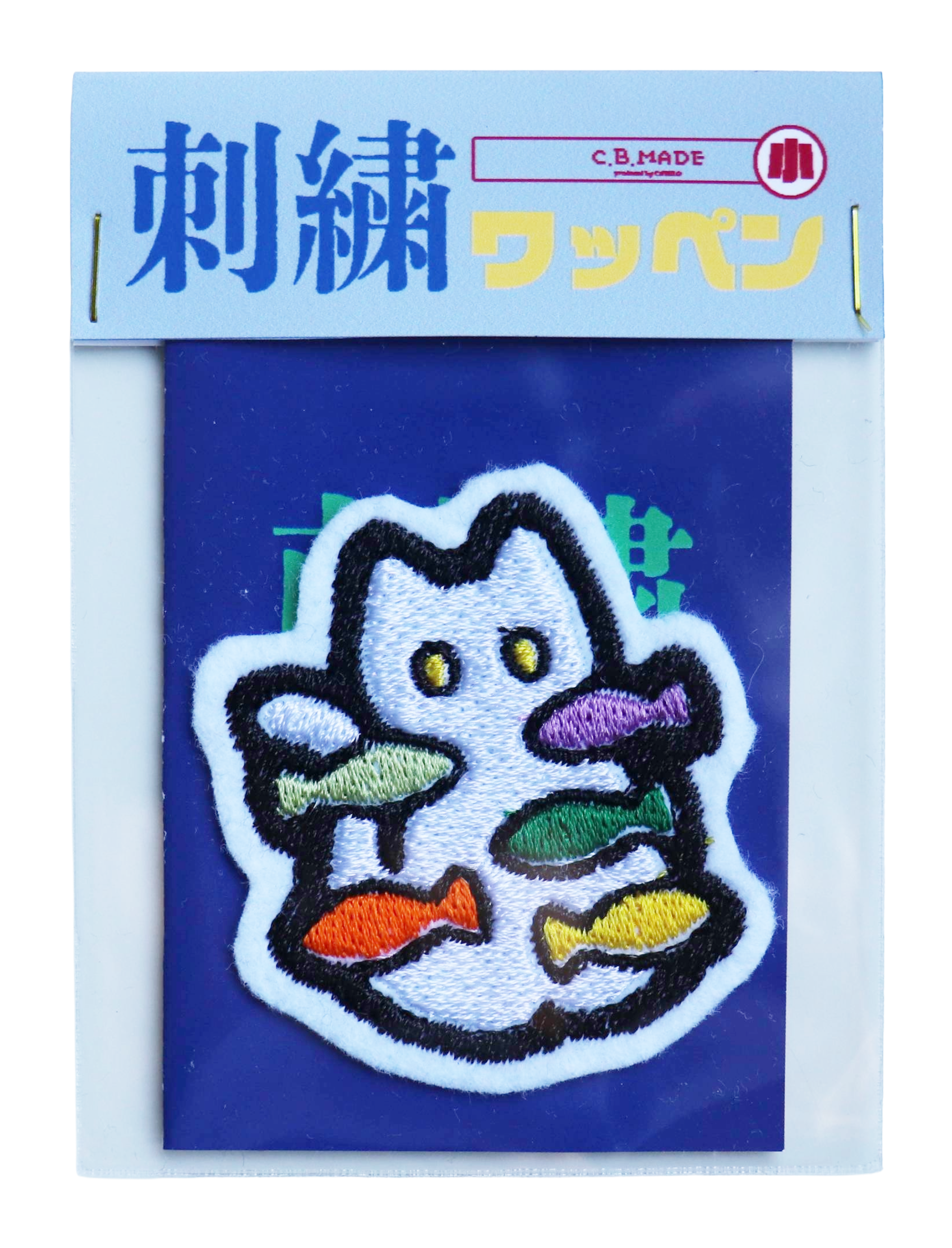 刺繍ワッペン〈ネコと魚 ホワイト〉