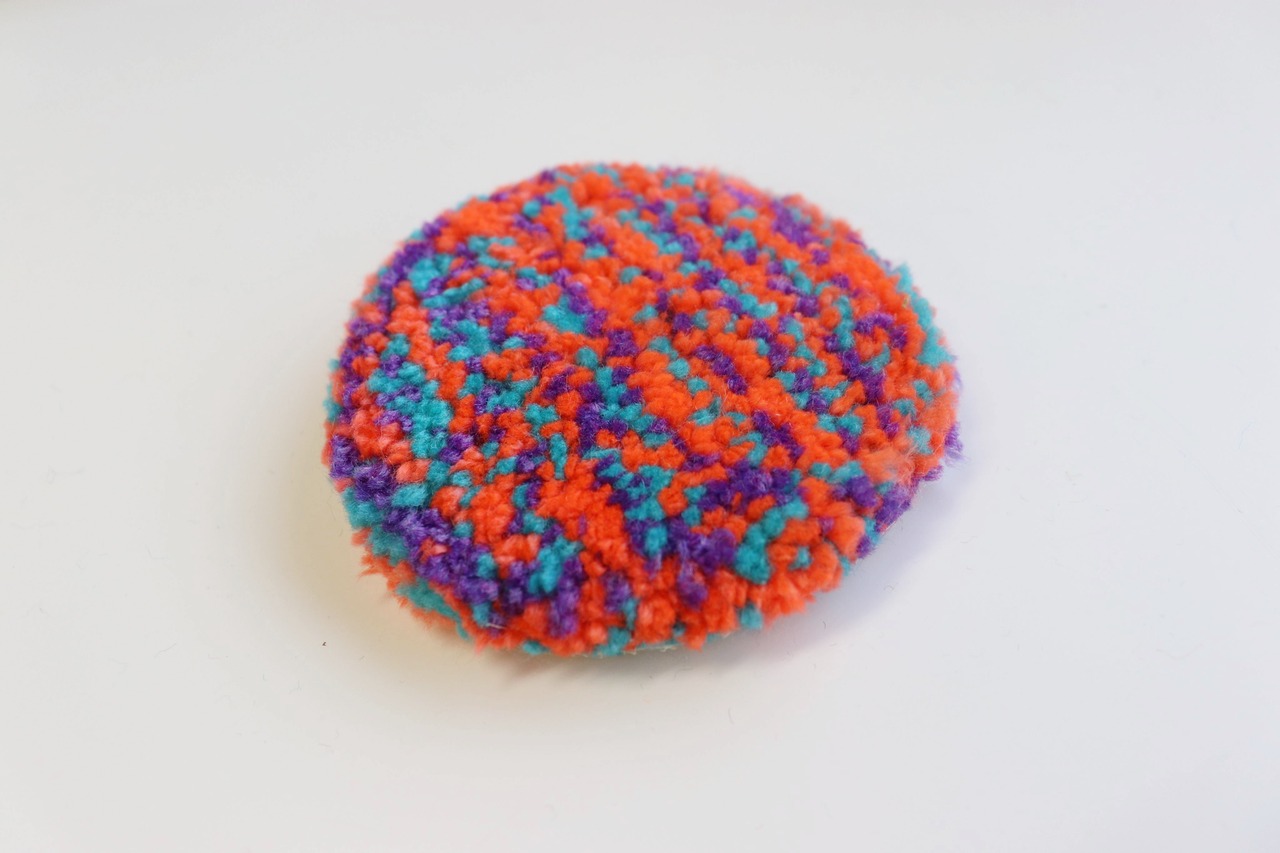 手のひらサイズの、小さなラグ作品です。