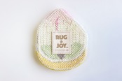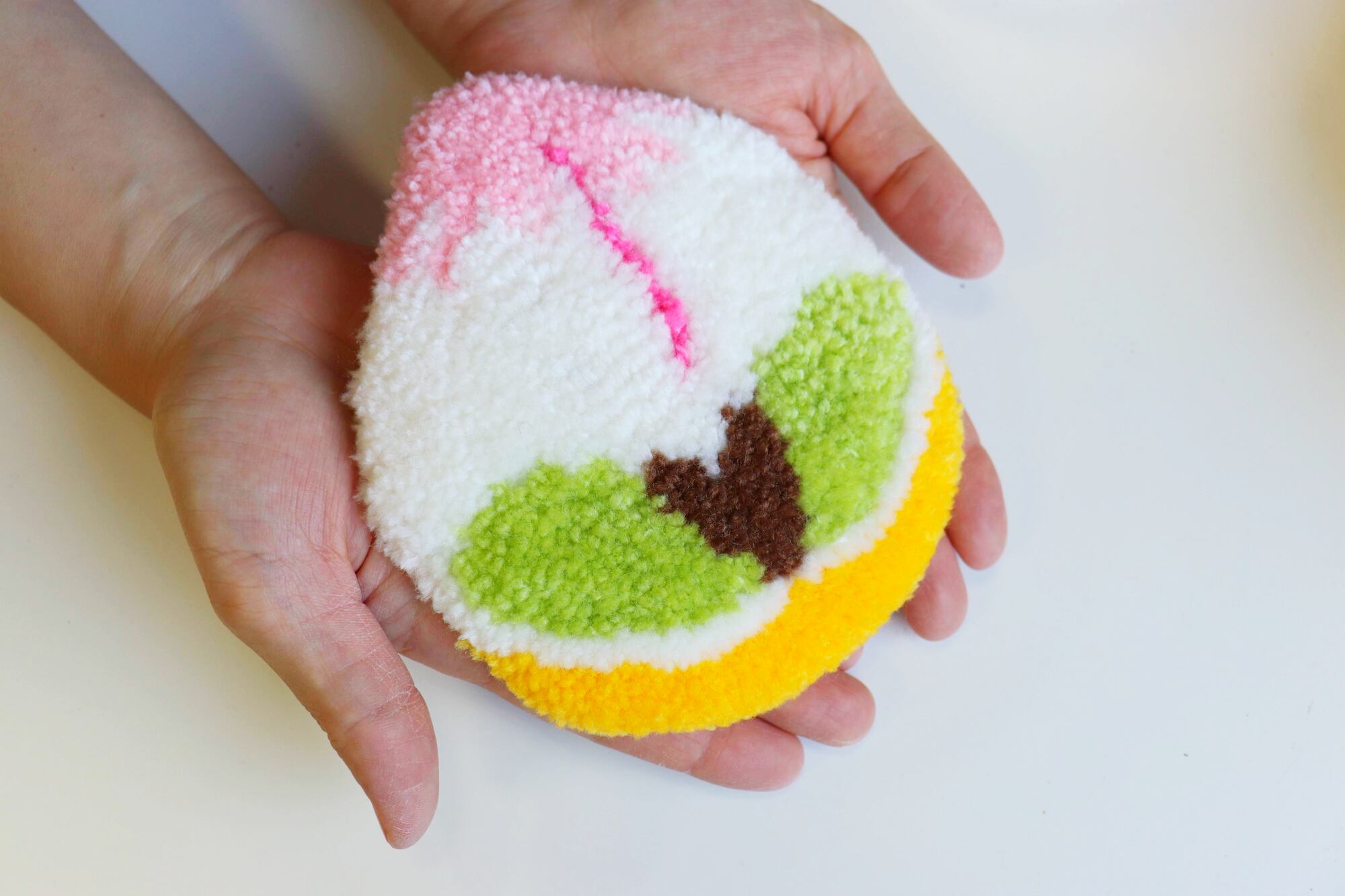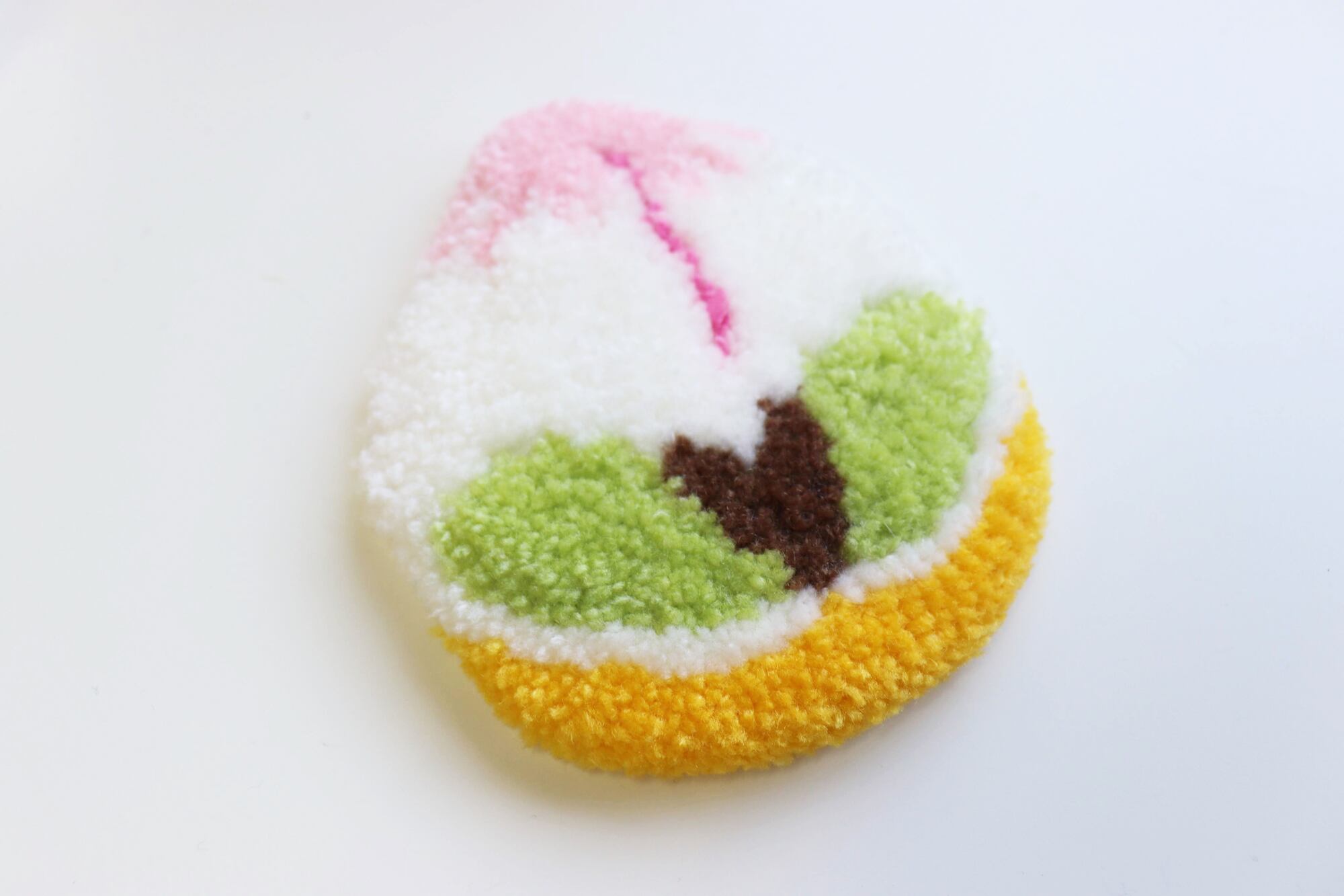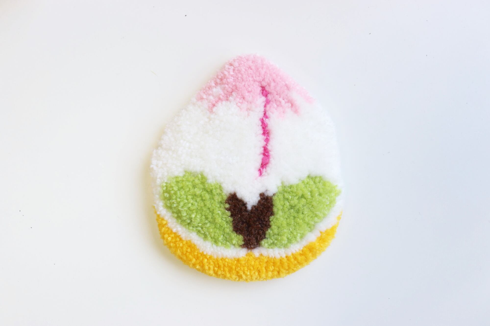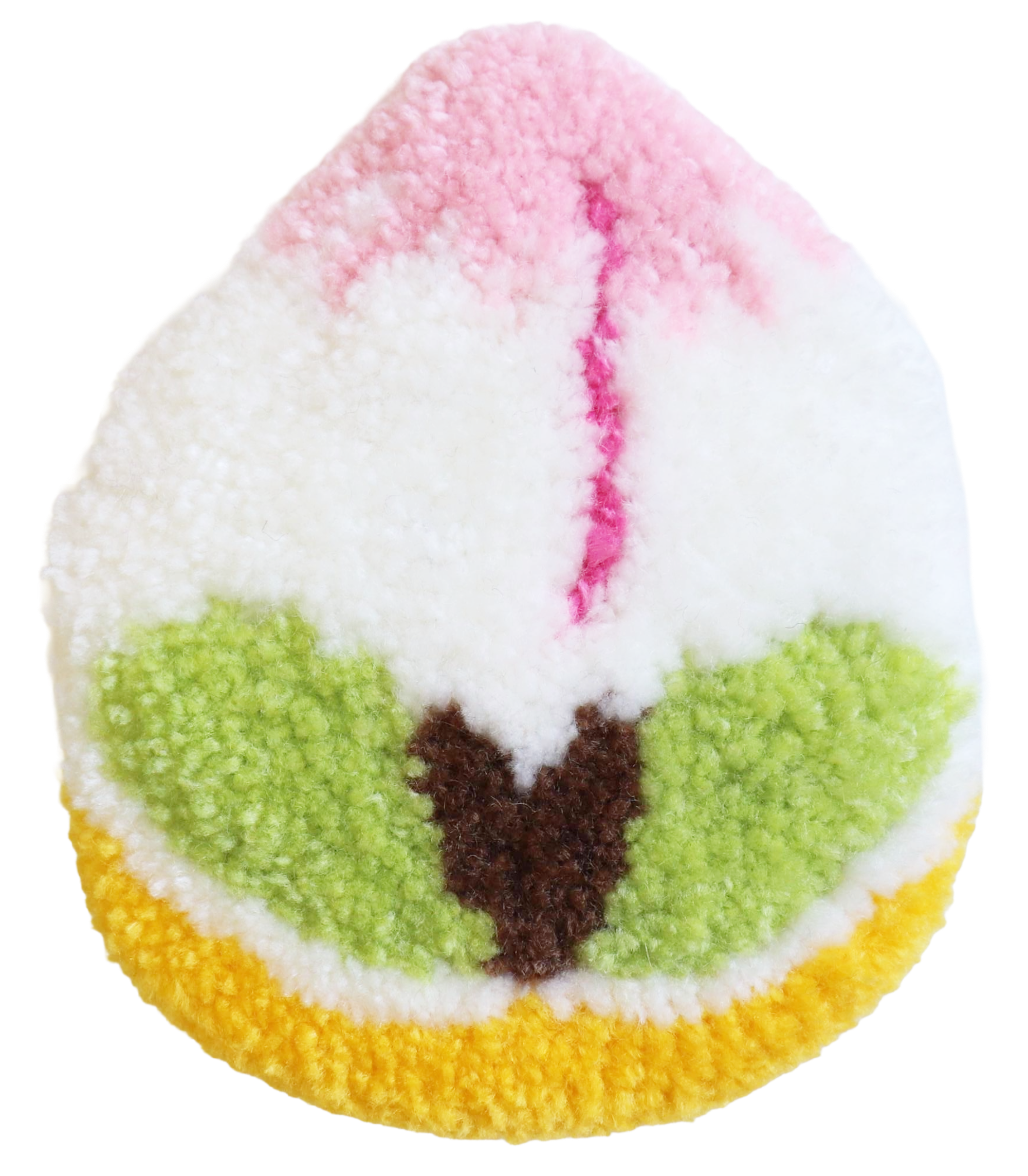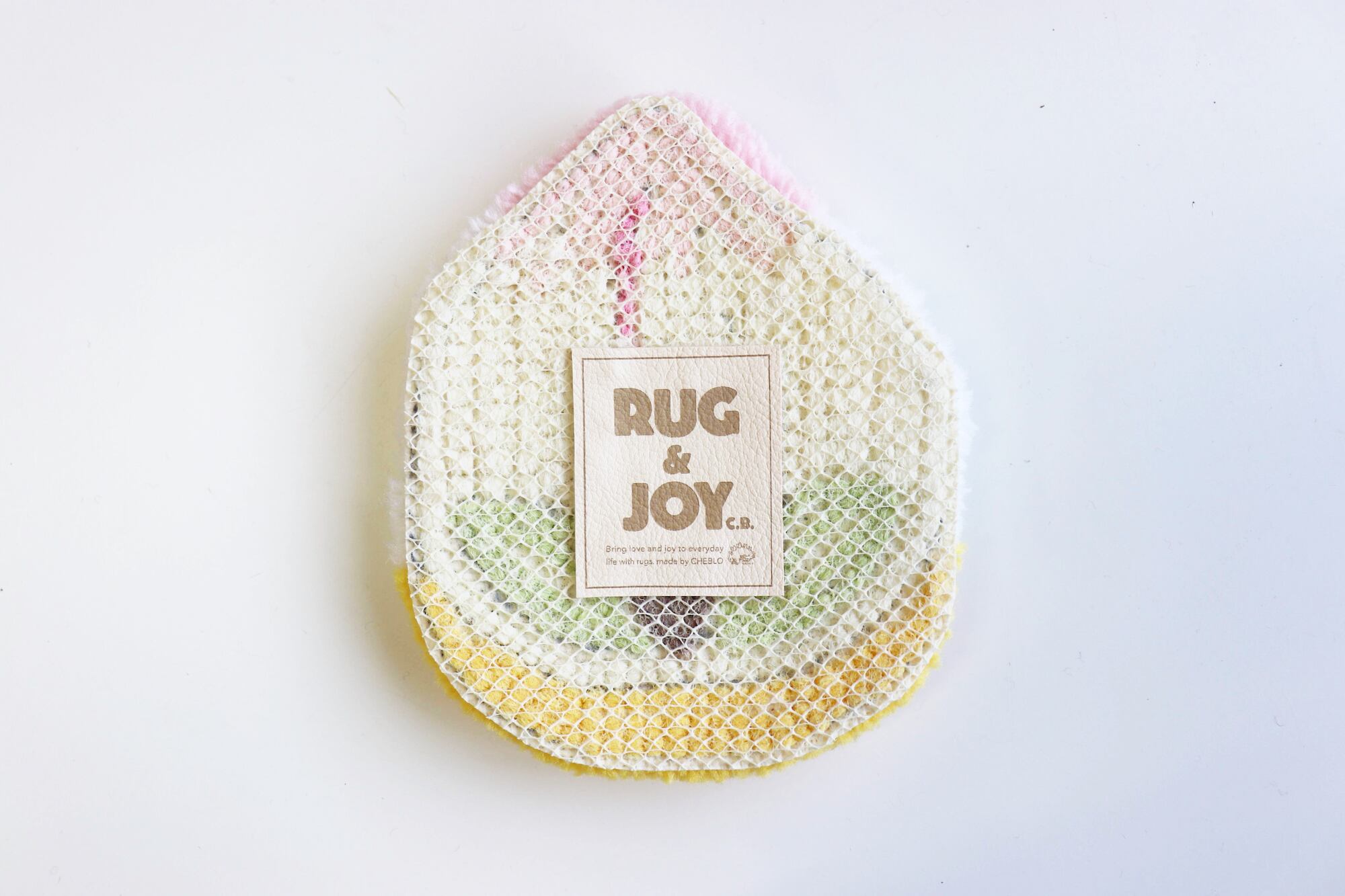 長崎の祝い菓子・桃カステラをモチーフにしたラグ作品です。