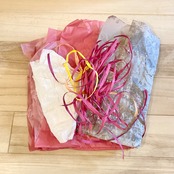 お祝いでいただいたお花のリボン、プレゼントの包装紙などファーバーアートにしたい材料を【着払い】でお送りください。